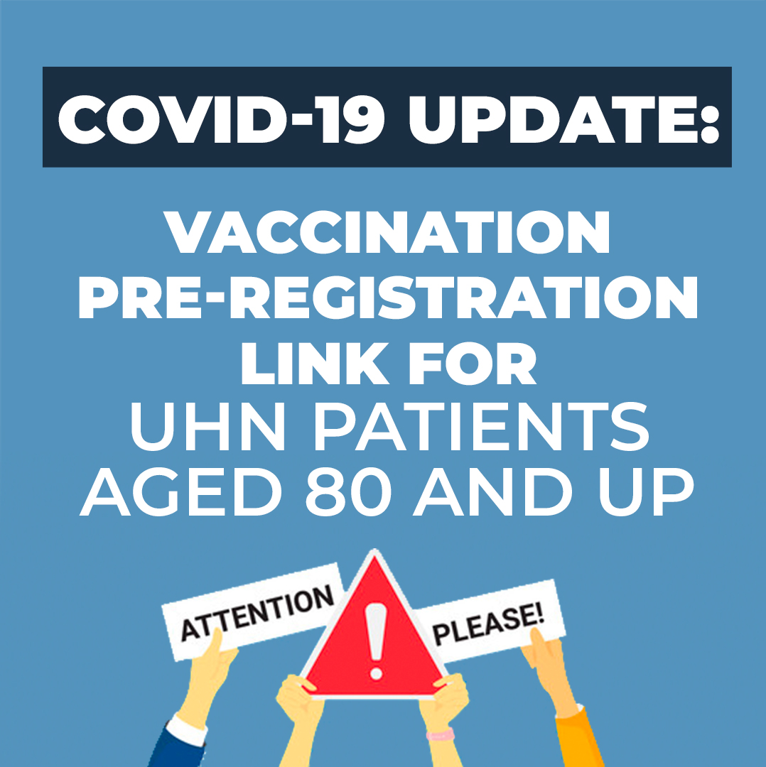 COVID-19 Update: Vaccination Pre-Registration Link for UHN Patients Aged 80 and Up